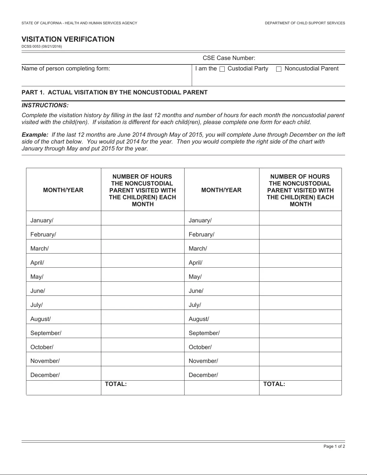 To record visitation history, the individual completing the form must fill in the number of hours the noncustodial parent visited with the child or children for each month over the last 12 months. If visitation varies for each child, separate forms must be filled out for each child to maintain clarity and accuracy.