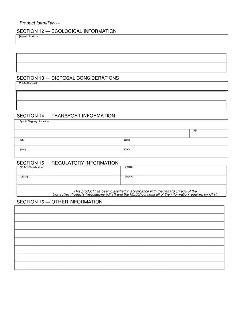 A Material Safety Data Sheet (MSDS) is a document that provides essential information about a chemical product. It includes details such as the product's identity, its hazards, and safety measures. The MSDS is structured into 16 sections, covering everything from chemical composition to first aid measures and disposal considerations. This document is crucial for ensuring the safe handling and use of chemicals in various settings, including workplaces and laboratories.